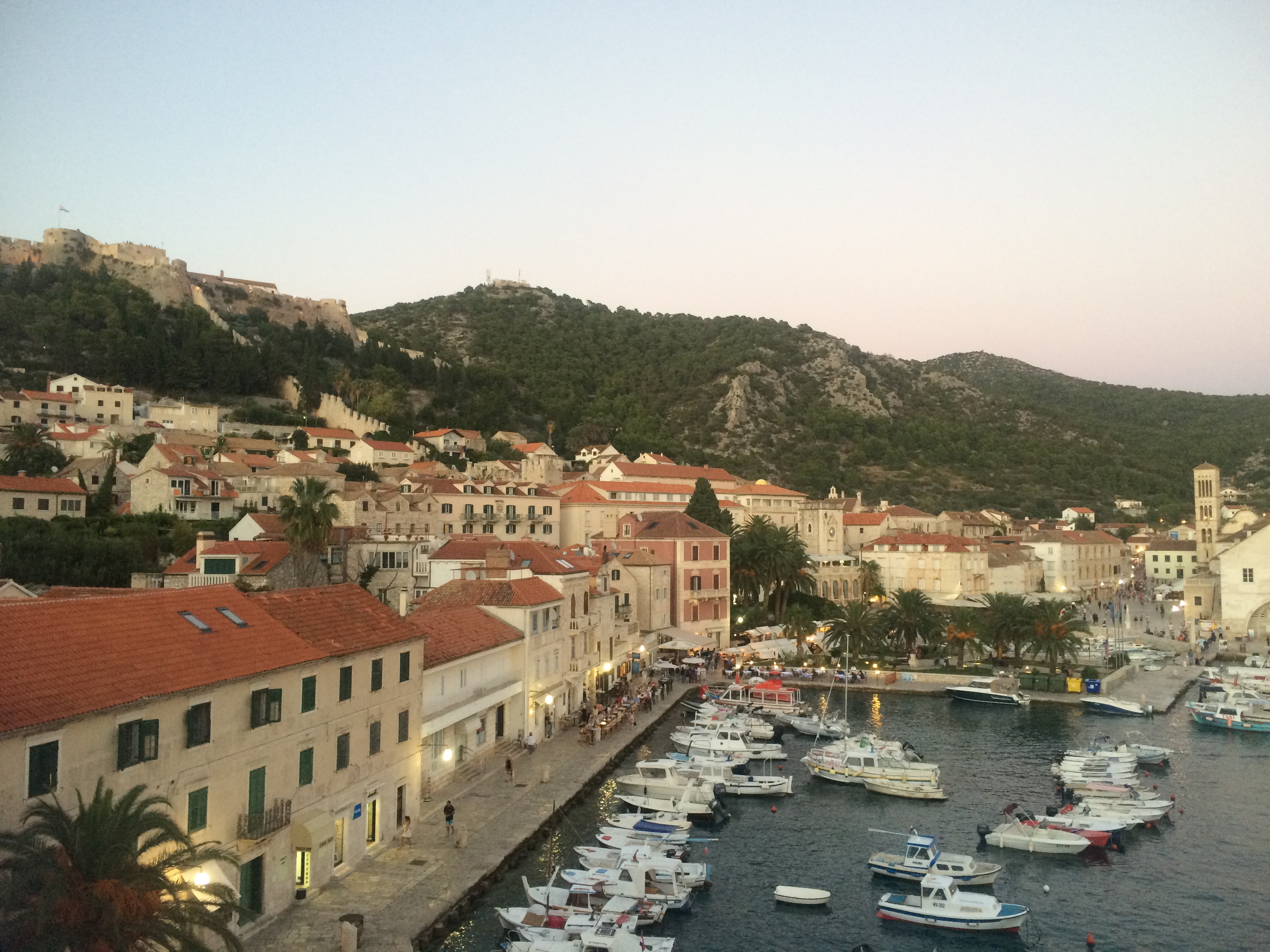 We got a water taxi to Hvar Island. Had dinner in Butcher hotel and went upstairs to the roof garden for views of Hvar from above. It also had a really nice pool. Then we went for drinks in the legendary Hula-Hula bar. The walk to Hula-Hula is lovely. We saw the sun setting as we walked along.