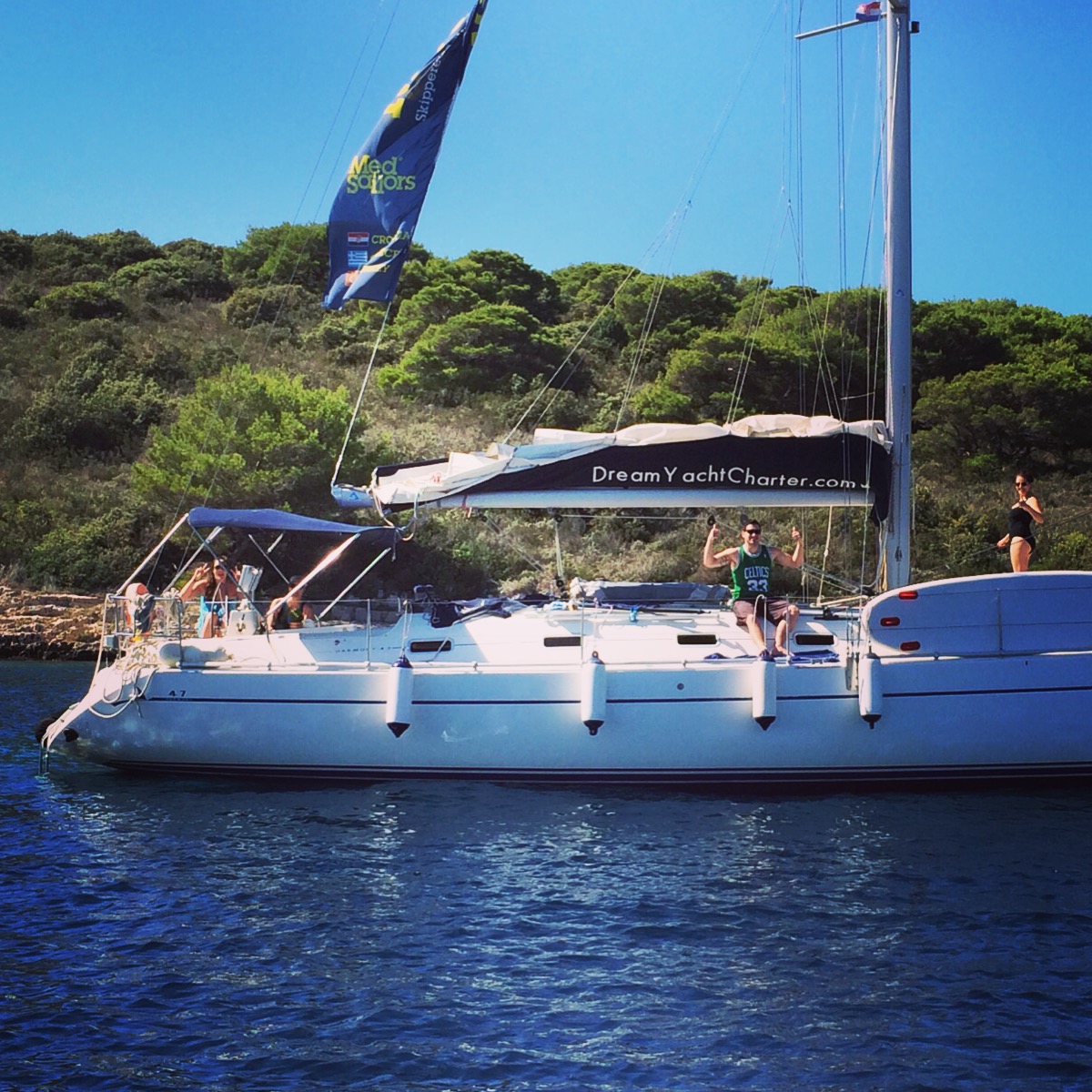 We checked in with Medsailors and bought some wine and snacks for the boat at the marina. They have a restaurant and pool if you have time to kill before check in. We had our safety brief from our skipper Ben and set sail to Stromorska.