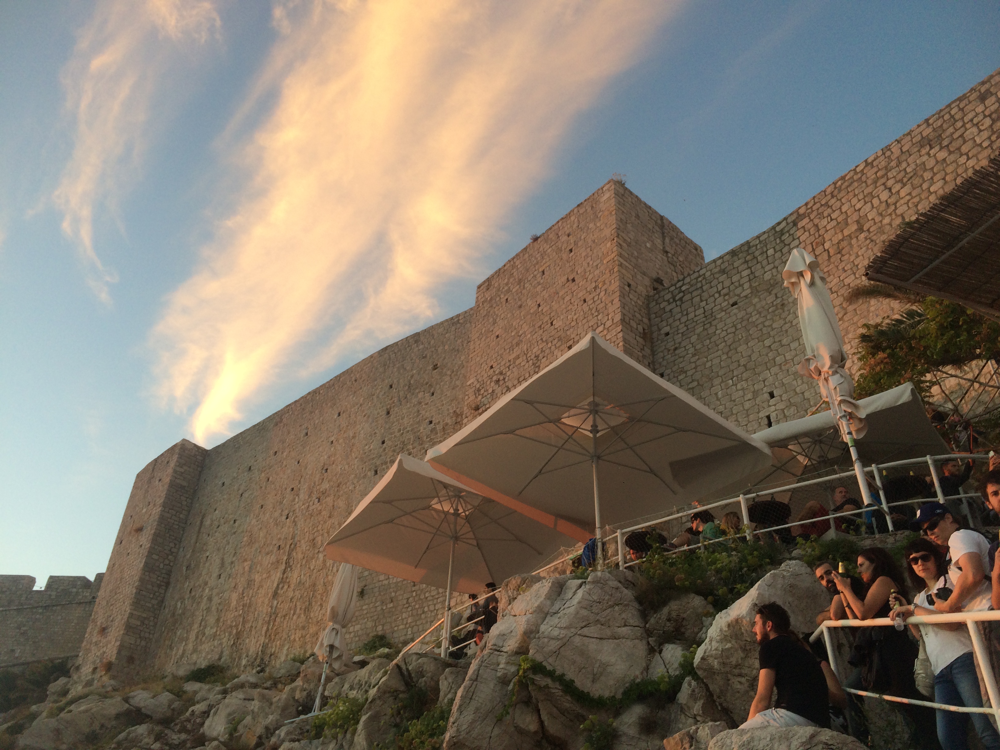 That evening there was a classical music concert in front of the cathedral and we enjoyed some live music for free before going to find the other bar on the rocks. There are two, but we found it quite difficult to find the entrance to this one, which of course made it all the more fun. We enjoyed a few drinks on the rocks beyond the city walls and watched the kayakers with the ever changing skyline in the backdrop.