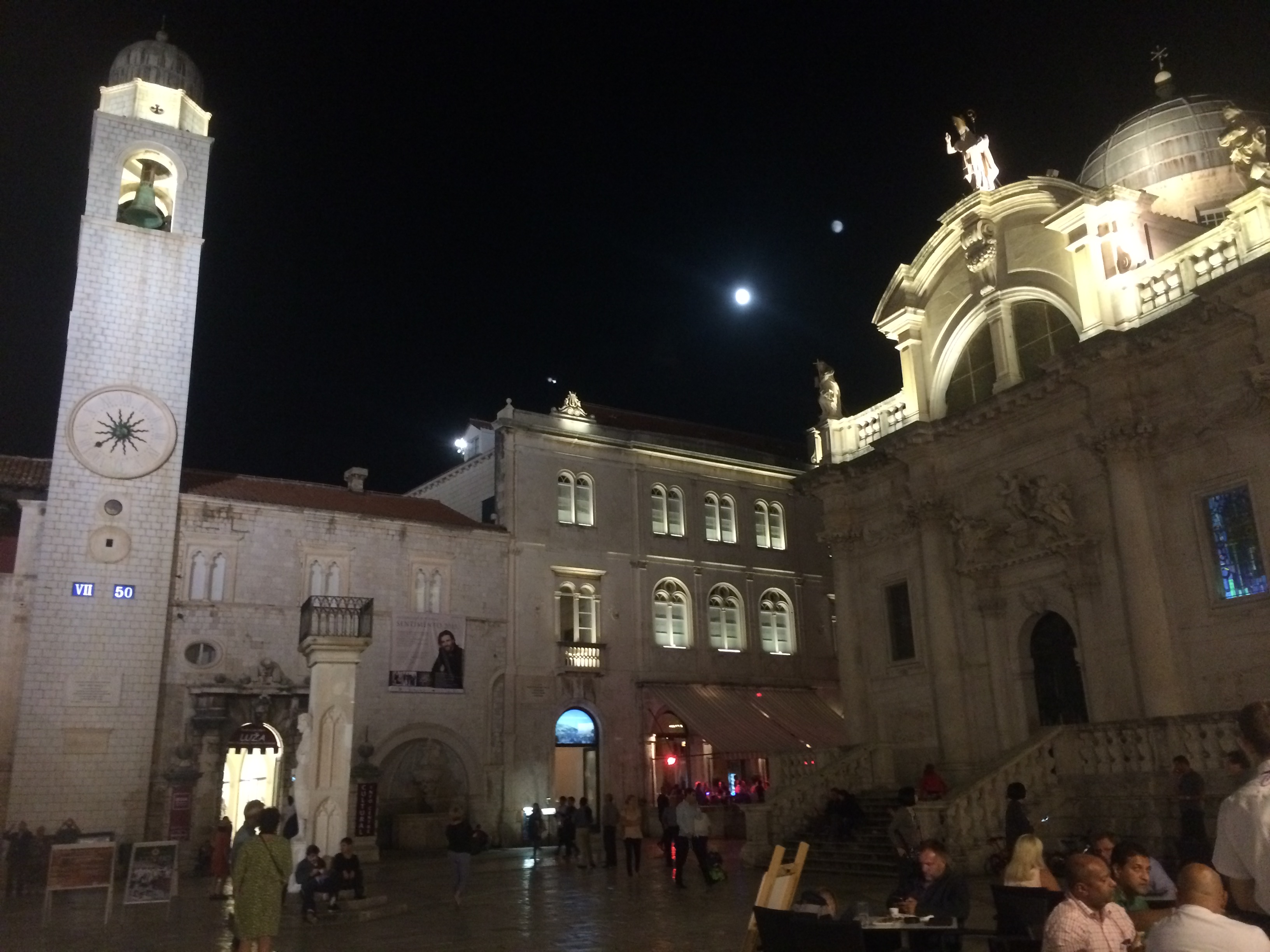 We arrived in Zadar, checked in and went for a walk around the city at night. We walked to the promenade to see the sun salutation art installation on the promenade. The ‘greeting to the sun’ light show is made up of changing colored panels on the promenade which are powered by solar energy collected during the day.