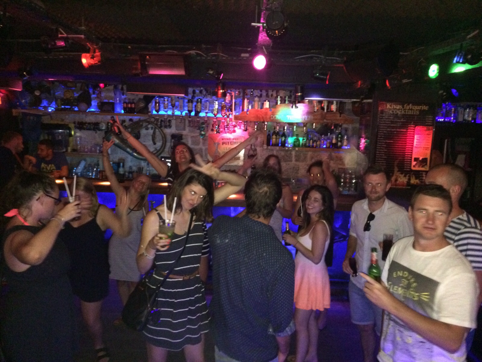 The rest of the group went for dinner so Ciaran and I went for some wine and cheese and met up with everyone in Kiva bar which is very small, but it seems to be where everyone migrates to on this island towards the end of the night. The music was good too. They have this strange tradition where you put on a military helmet, they bash your head and then you take you drink.
